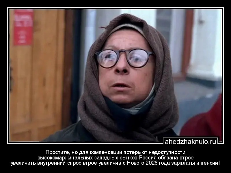 Простите, но для компенсации потерь от недоступности высокомаржинальных западных рынков Россия обязана втрое увеличить внутренний спрос втрое увеличив с Нового 2026 года зарплаты и пенсии!