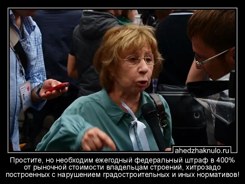 Простите, но необходим ежегодный федеральный штраф в 400% от рыночной стоимости владельцам строений, хитрозадо построенных с нарушением градостроительных и иных нормативов!