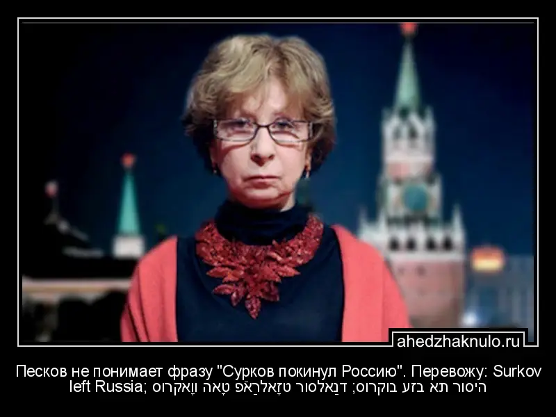 Песков не понимает фразу "Сурков покинул Россию". Перевожу: Surkov left Russia; סורקאָוו האָט פֿאַרלאָזט רוסלאַנד ;סורקוב עזב את רוסיה