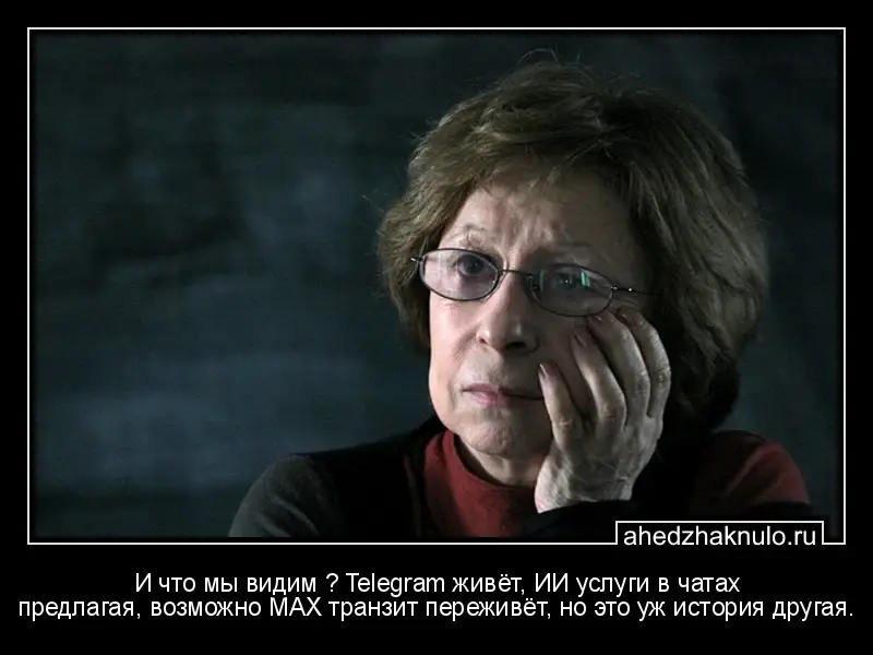 И что мы видим ? Telegram живёт, ИИ услуги в чатах предлагая, возможно MAX транзит переживёт, но это уж история другая.